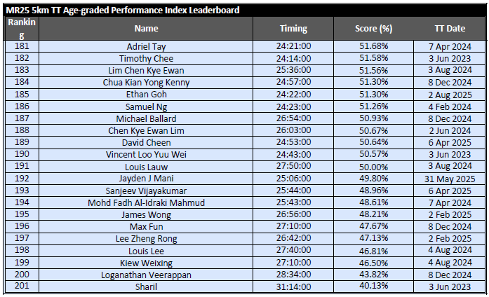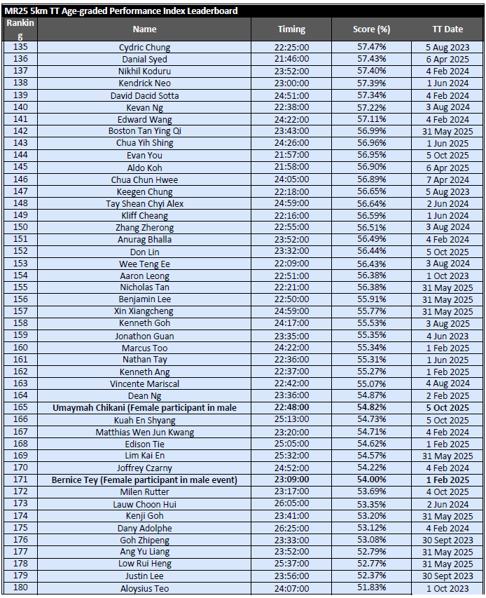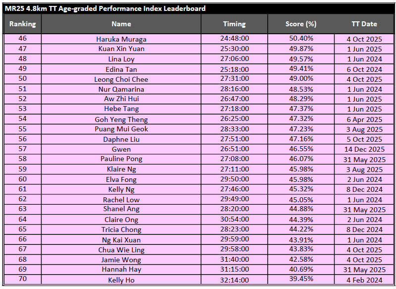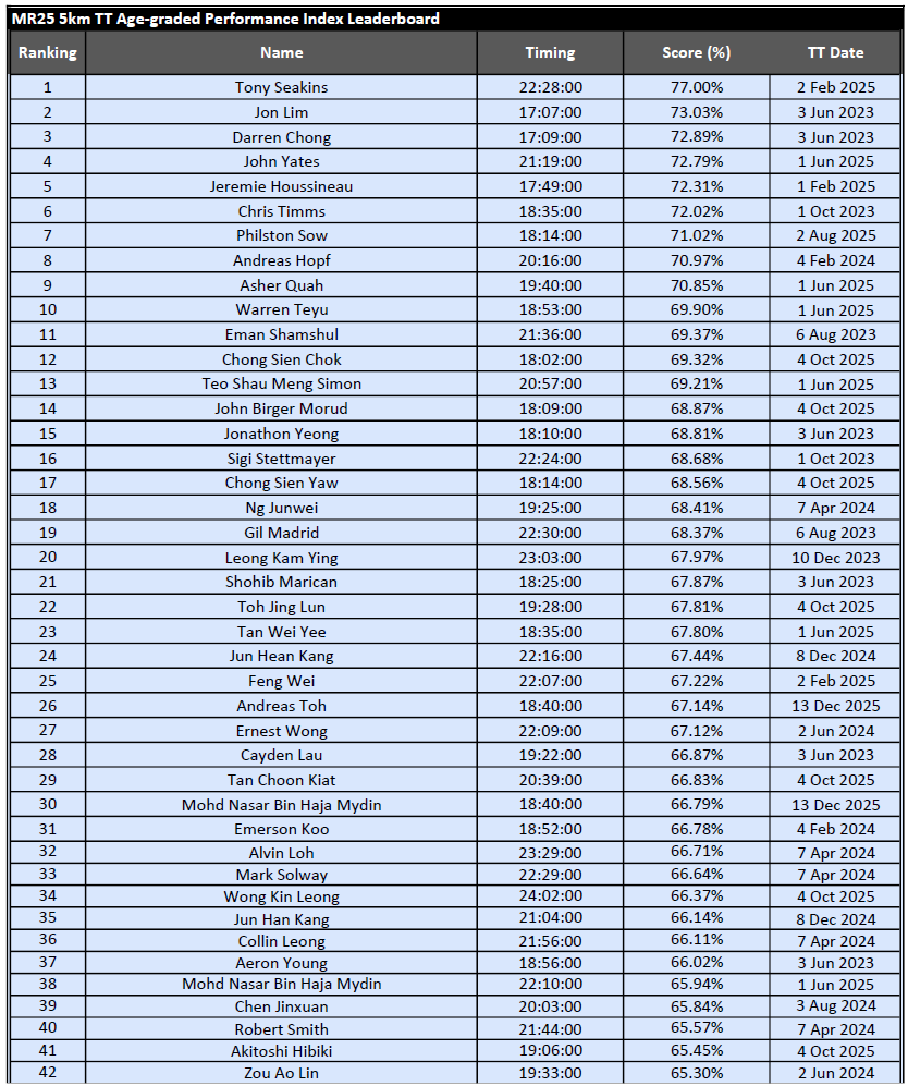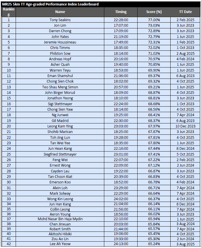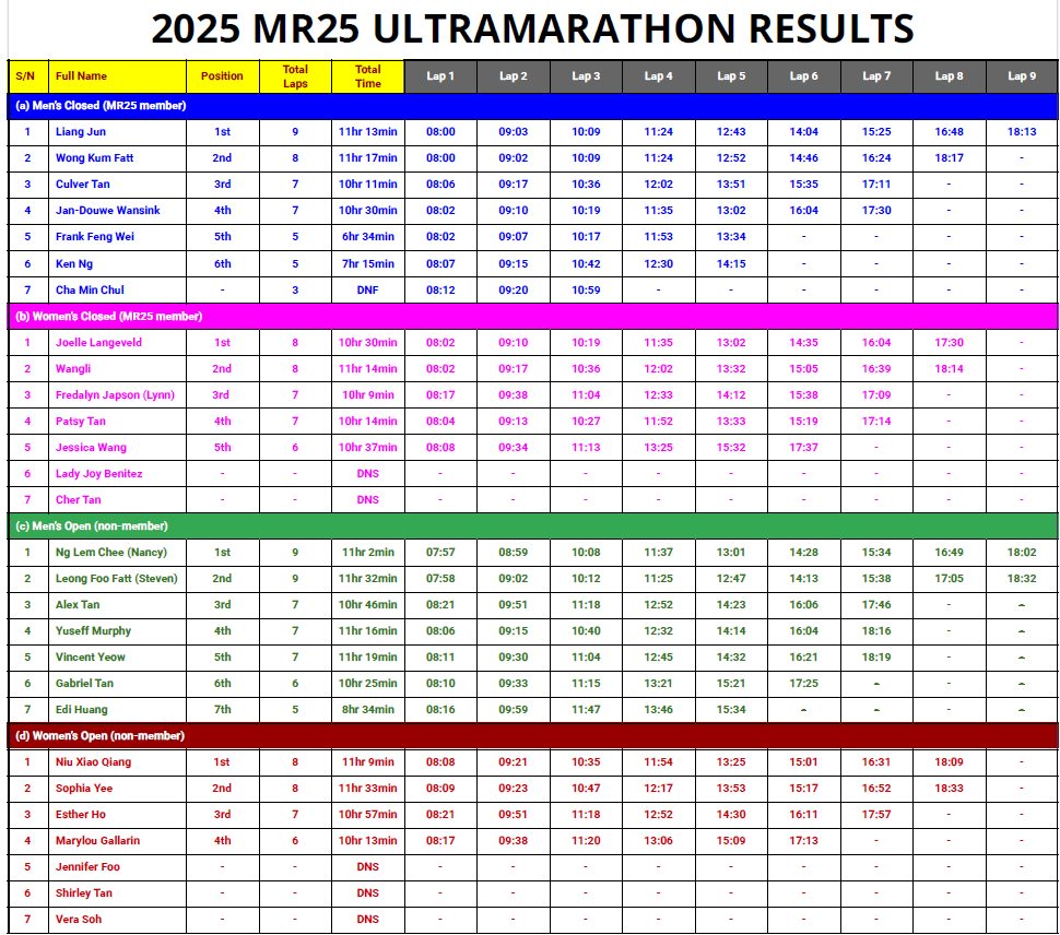 Results from MR25 PR 15KM – 1 Mar 2026