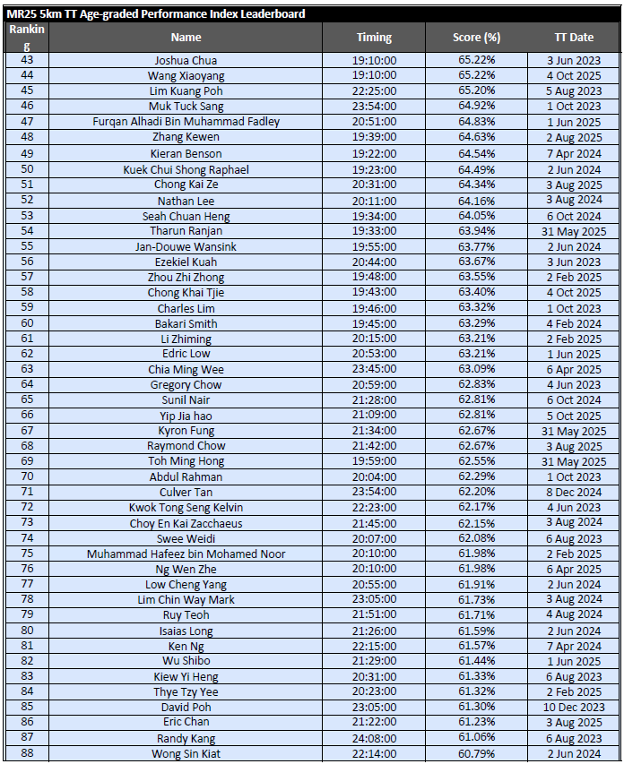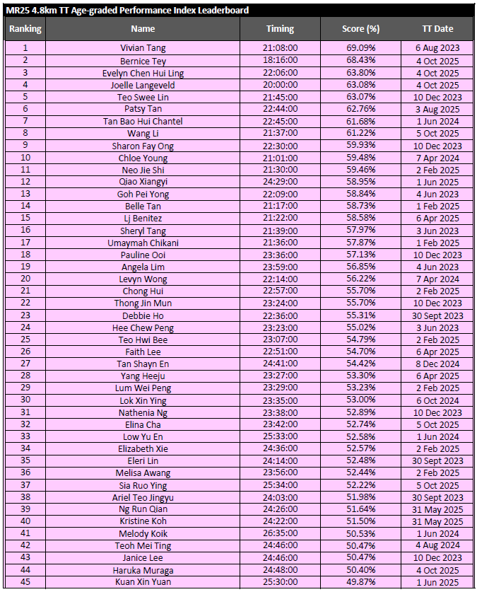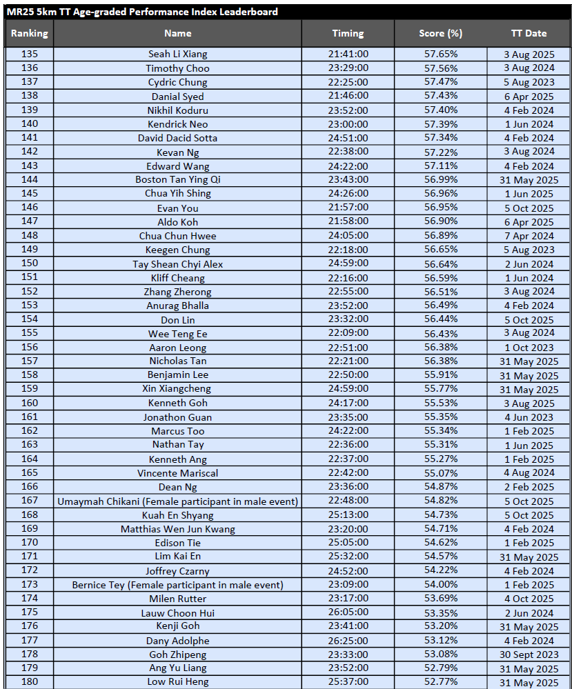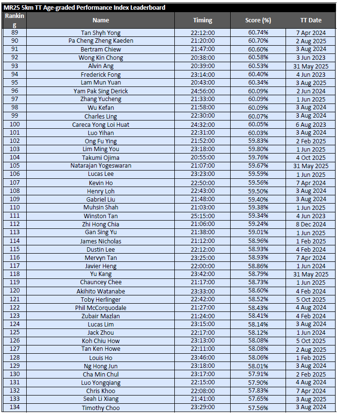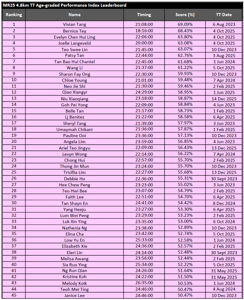 Results from MR25 PR 15KM – 1 Mar 2026